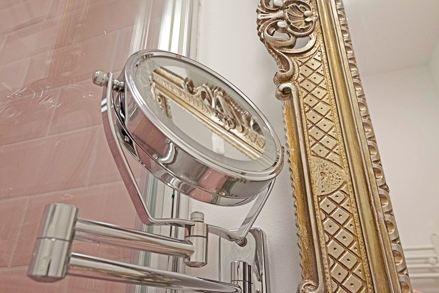 Die Bäder sind komplett neu und im Retro-Style eingerichtet. Alle Bäder verfügen über eine große Dusche – die Hochzeitssuite hat außerdem noch eine zusätzliche Badewanne.