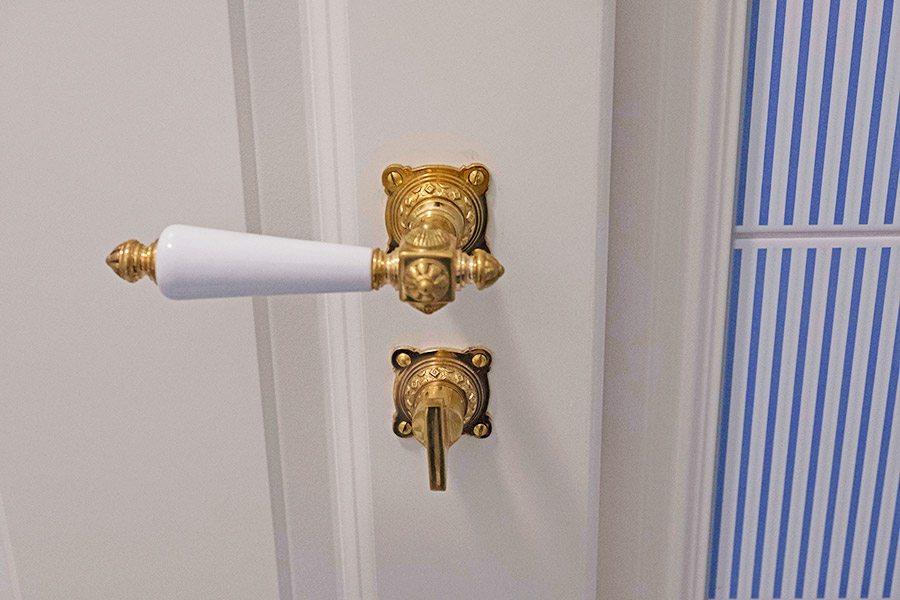 Die Bäder sind komplett neu und im Retro-Style eingerichtet. Alle Bäder verfügen über eine große Dusche – die Hochzeitssuite hat außerdem noch eine zusätzliche Badewanne.