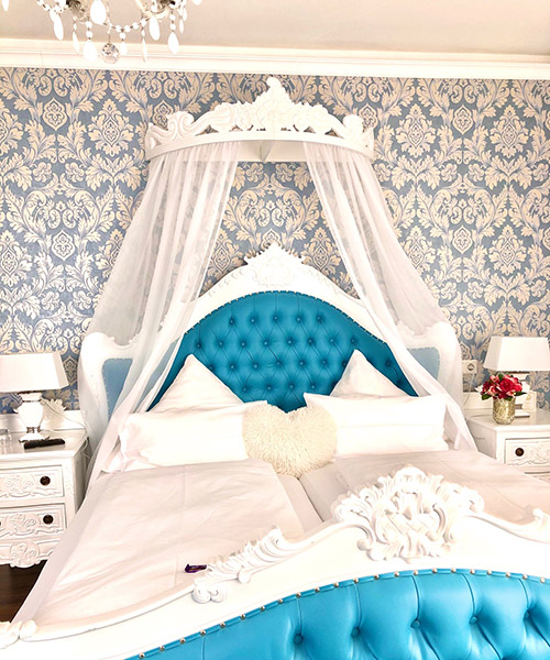 Das Hotel „Villa Rosenhof“ verfügt über 12 komfortable, außergewöhnlich eingerichtete Zimmer, ein Appartement sowie eine Hochzeitssuite mit Himmelbett. Jedes der Räume wurde individuell farblich gestaltet. Die Zimmer verfügen alle über ein 40-43 Zoll Fernsehen, kostenloses W-Lan, Safe, beleuchteten Kosmetikspiegel und einen Haartrockner.